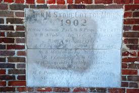 Perfect! My inner eerie clapped with relish, squirming and wriggling. Amongst the other places to show her, like Waverly, cemeteries, certain roads, and such; we drove into the paved parking area in front of the EE Cooley Building. It was hotter and more humid than the Okefenokee Swamp in August 1995 {different story}, so none of the five of us wanted to muster the energy to get out of the lil yaris and then squeeze back in {a notion that is akin to putting toothpaste back in the tube}. So I took a picture of the name plate by the entrance, which listed all the members and their positions on that very first board of the John M Stone Cotton Mill. Then the teenage daughter and I talked about how that building just begs for a good story or two.